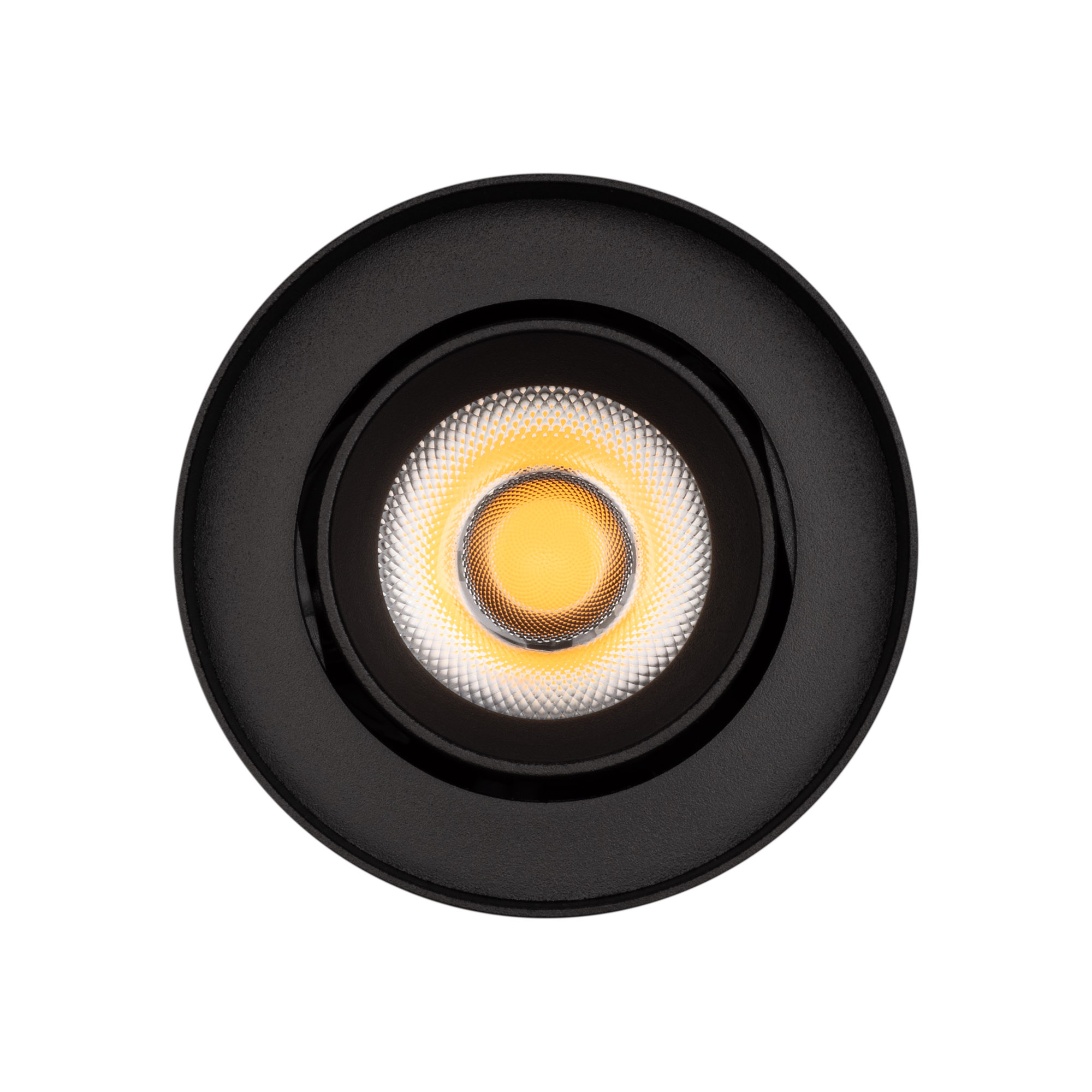 Накладной интерьерный светильник. Мощность 10 Вт, св. поток 970 лм, 93 лм/Вт, теплый 3000 K, CRI>90, угол 36°, регулируемое направление луча 40° (20+20), поворотный световой модуль вокруг своей оси на 340°, UGR <18, напряжение питания 230 В. Черный круглый корпус из алюминия, степень защиты IP54. Размер: диаметр 86,5 мм, высота 120 мм. Монтаж накладной. Драйвер 27-43 В, 250 мА, пульсация <1%.