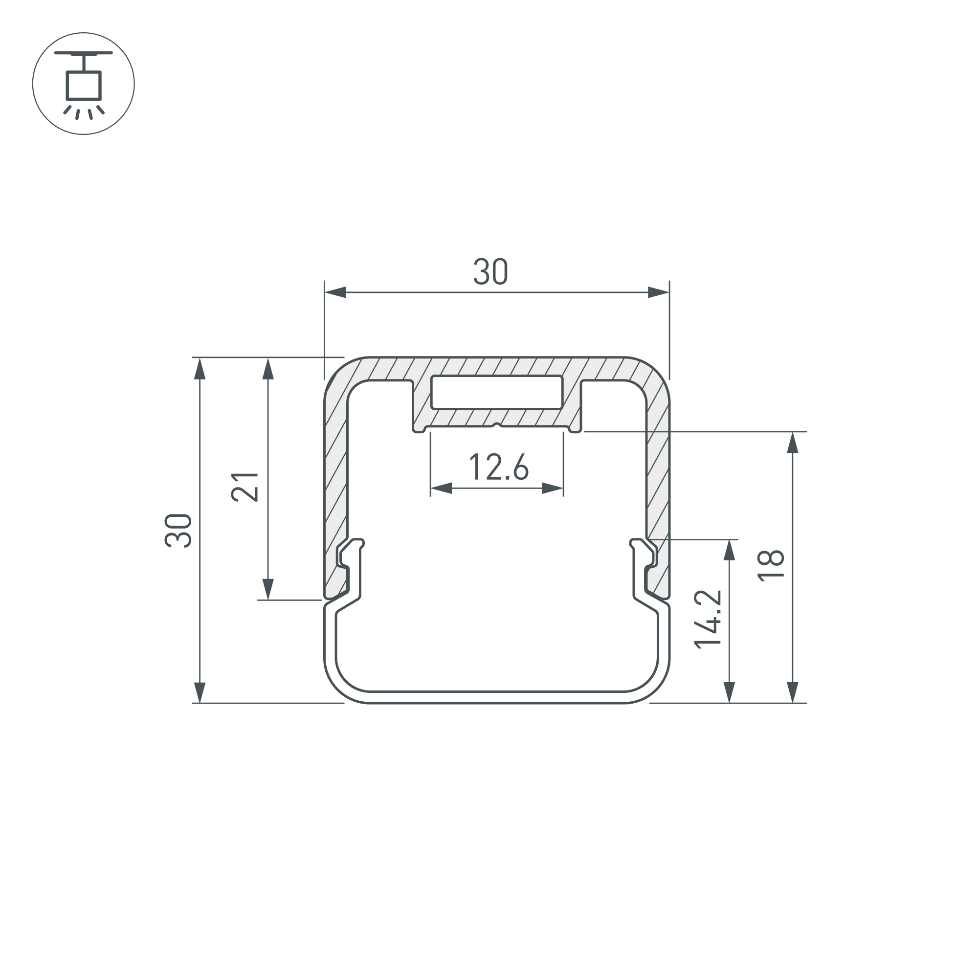 Профиль с экраном LINE-D-3030-2000 SQUARE BLACK+OPAL (Arlight, Алюминий)