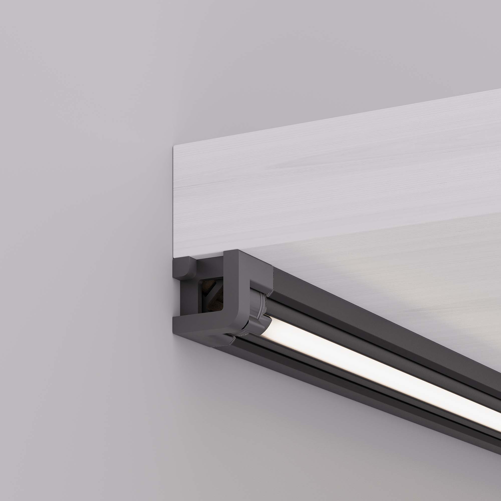 Двухкомпонентный накладной угловой профиль серо-стального цвета из алюминия в комплекте с матовым экраном из ПММА со светопропусканием 68% для подсветки мебели, пазов, ниш и других элементов интерьера. Вращающаяся внутренняя часть позволяет менять направление света, не меняя локацию светильника. Габаритные размеры профиля составляют 2000 мм в длину, 10 мм в ширину и 10 мм в высоту. Площадка для установки светодиодных лент позволяет использовать ленту шириной до 5,6 мм и мощностью до 10 Вт/м.