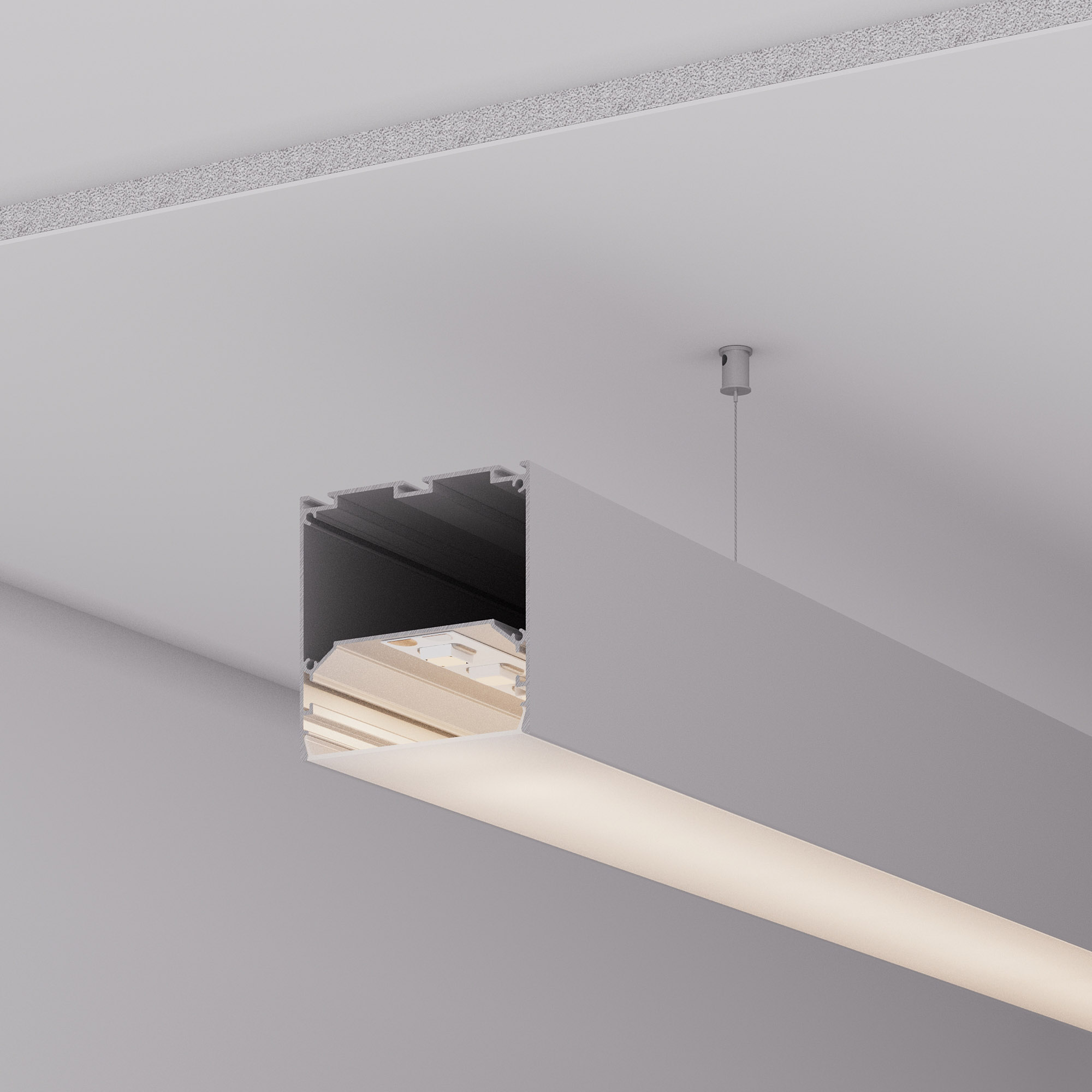 Подвесной/накладной профиль из анодированного алюминия с отсеком для блока питания (72,5х33,3 мм) для основного освещения и контурной подсветки.