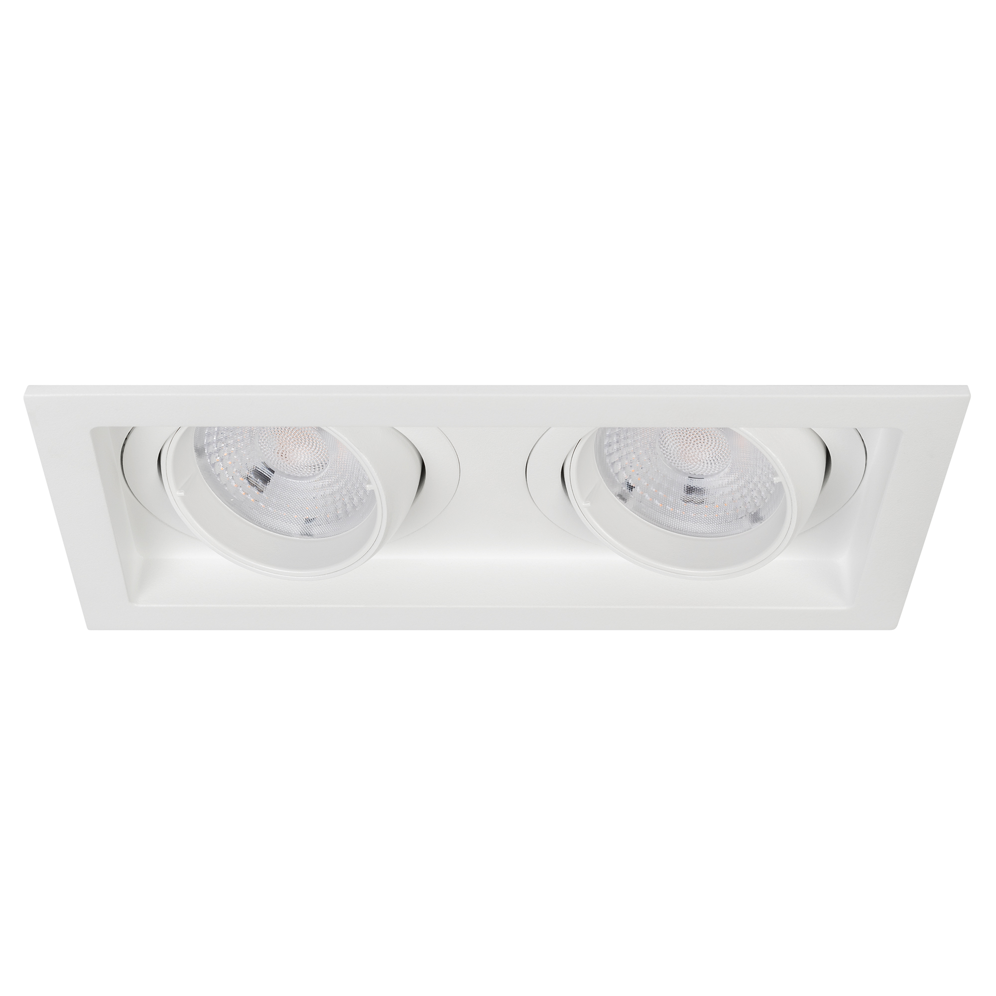 Встраиваемый карданный светильник. Мощность 2х12 Вт, св. поток 2788 лм, 116 лм/Вт, тёплый 4000 K, CRI>92, угол 40°, напряжение питания 230 В. Белый корпус из алюминия, белая вставка, степень защиты IP20. Размер: длина 170 мм, ширина 90 мм, высота 80 мм. Монтаж встраиваемый, установочное отверстие: длина 155 мм, ширина 75 мм. Драйвер 27-40 В, 300 мА, пульсация <2%.