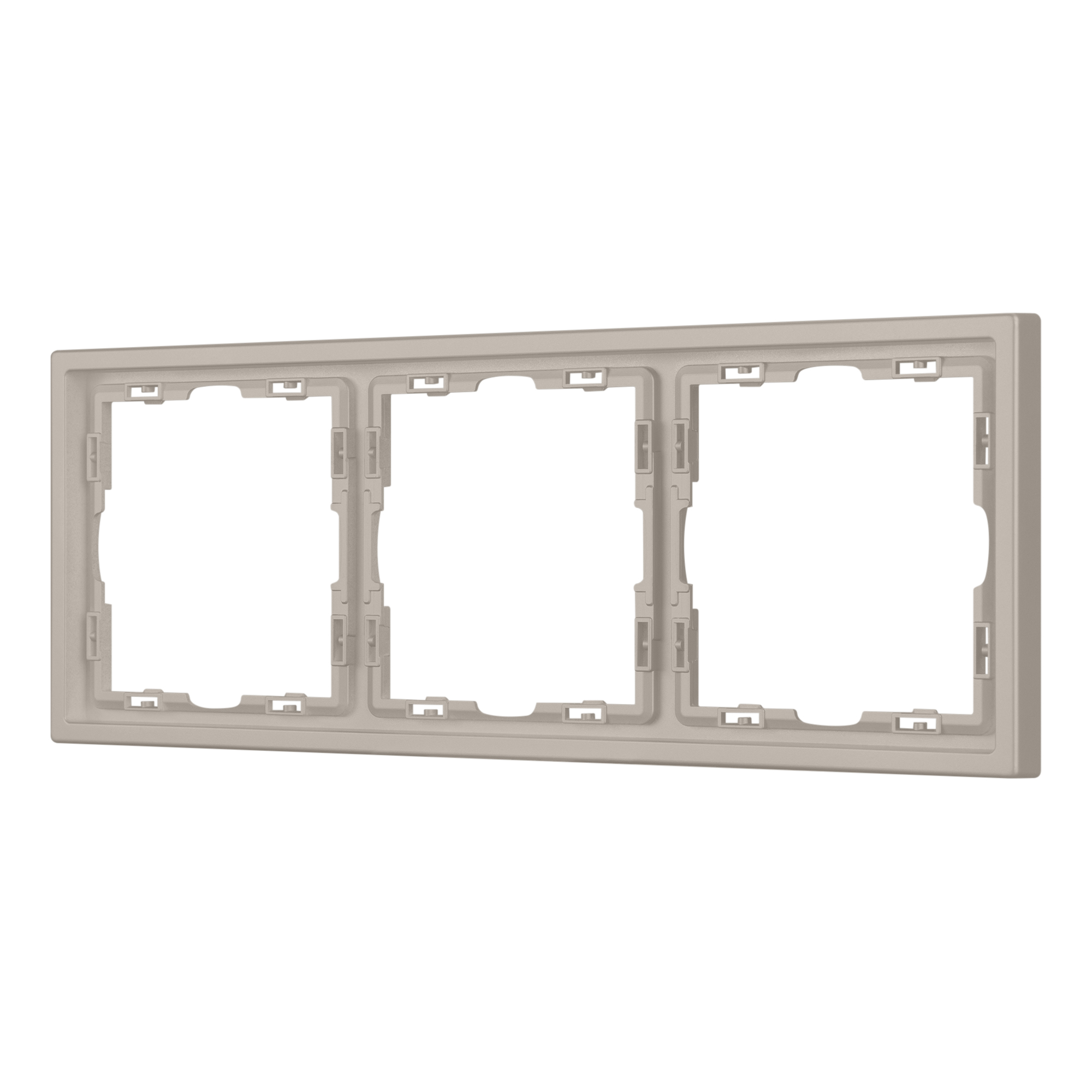 Рамка пластиковая на 3 поста, под встраиваемый механизм. Цвет - кашемир, с Soft-Touch поверхностью. Среднего уровня герметичности IP20. Ориентация монтажа горизонтальная. Габаритные размеры: длина 223 мм, ширина 81 мм, высота 8.55 мм. Гарантийный срок 12 мес.