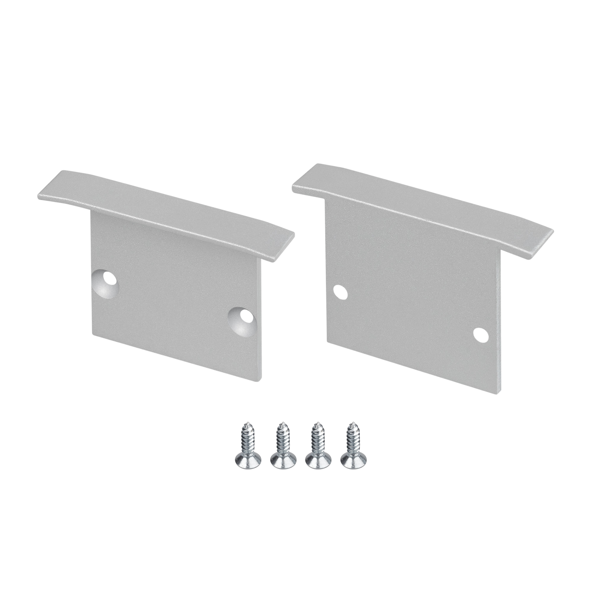 Пара глухих заглушек для профиля LINIA25-F серебристого цвета. Материал - алюминий. В комплекте: заглушка - 2 шт., винт - 4 шт. Цена за комплект.
