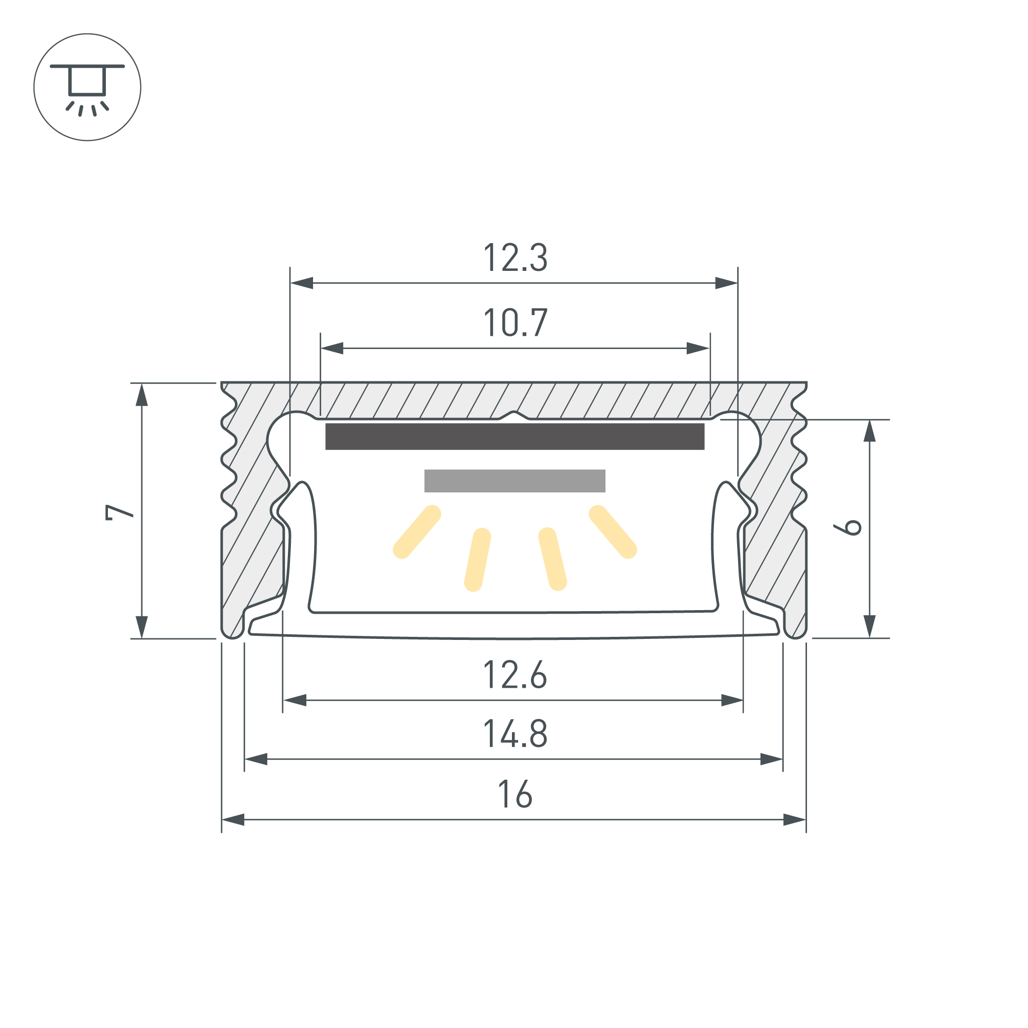 Алюминиевый анодированный профиль для светодиодных лент и линеек. Габаритные размеры (L×W×H): 3000x16x7 мм. Ширина площадки для ленты 10 мм. Экраны, заглушки и другие аксессуары приобретаются отдельно. Цена за 1 метр.