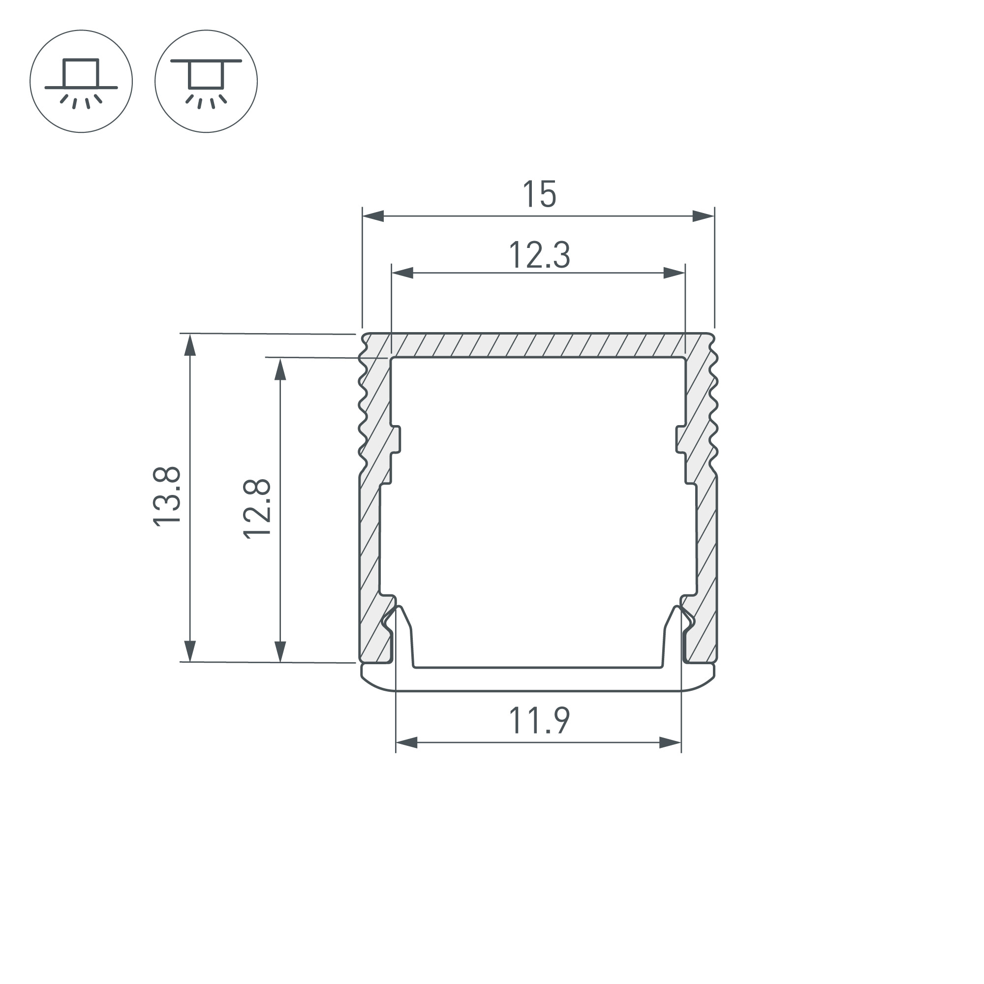 Накладной микро-профиль из анодированного алюминия для подсветки мебели, пазов, ниш и других элементов интерьера. Габаритные размеры профиля составляют 3000 мм в длину, 15 мм в ширину и 13,8 мм в высоту. Площадка для установки светодиодных лент позволяет использовать ленту шириной до 12 мм и мощностью до 15 Вт/м. Это обеспечивает гибкость в выборе светодиодных лент и создает потрясающие световые решения. Экран, заглушки и другие аксессуары не включены в комплект и приобретаются отдельно. Цена указана за 1 метр профиля. Отличное решение для создания современных световых проектов.