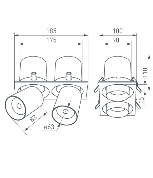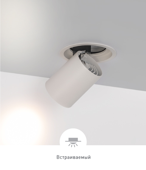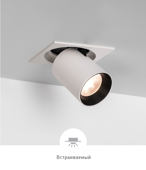 Интересное исполнение светодиодной части, круглая или квадратная встраиваемая база. Уникальный поворотно-выдвижной механизм светильника позволяет поворачивать световой модуль на 360° и регулировать его наклон на 90°, легко изменяя направление светового потока.
