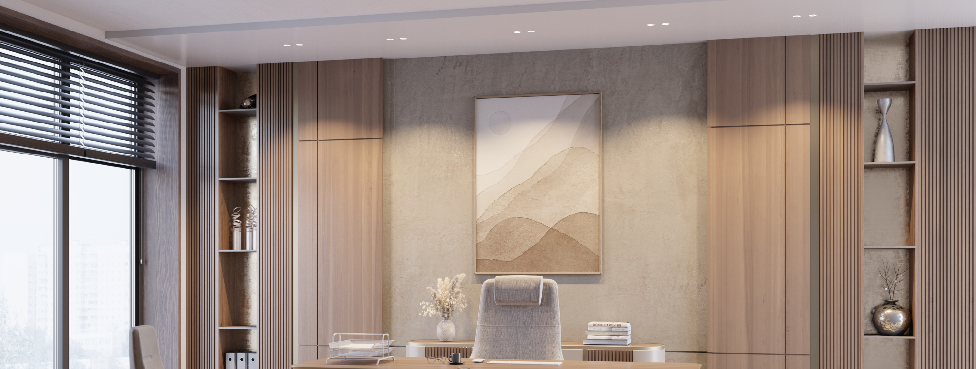 Г-образная форма радиатора позволяет легко встраивать компактные светильники в неглубокие запотолочные пространства.