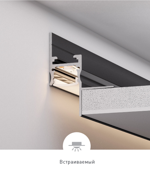 Парящий потолок Модели для создания подсветки с разной шириной зазора — от 12 до 39 мм.