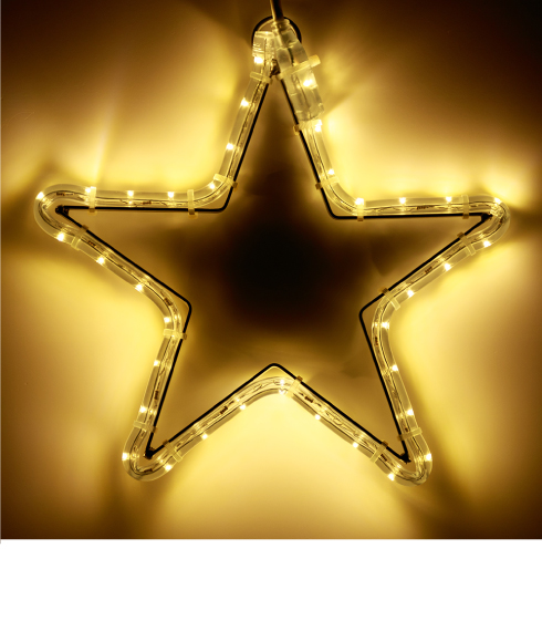 Двухмерные фигуры «Звездочка» из дюралайта помогут создать праздничное настроение в интерьере кафе или магазинов, а также на фасадах зданий и верандах под навесом.