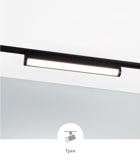 Безопасное напряжение питания 48 В. Светильники фиксируются в шинопроводе двумя способами — с помощью магнитов и механических фиксаторов, что обеспечивает надежное соединение.