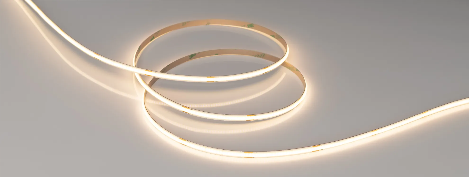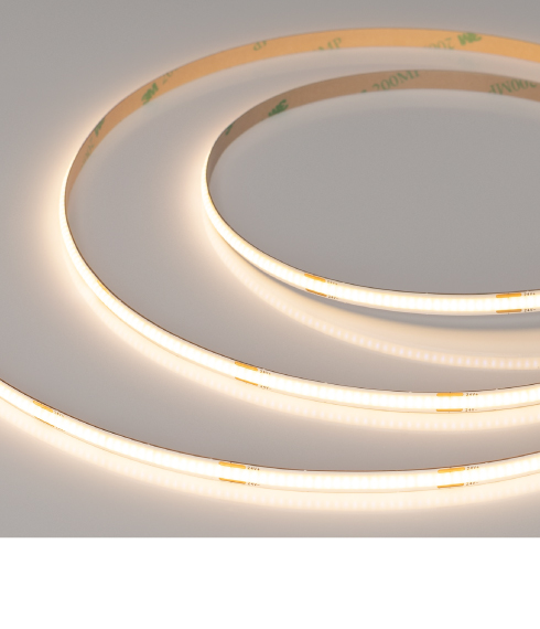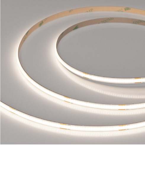 Основное преимущество бескорпусных лент COB — эффект сплошной линии света без применения рассеивателей (экранов). За счет заливки люминофором по всей длине ленты образуется равномерное свечение без видимых точек светодиодов. COB-ленты серии Х480 предназначены для декоративной подсветки интерьера, а также оформления рекламы и витрин. Тип светодиодов — CSP (X).