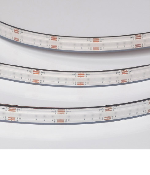 Цветные светодиодные ленты CSP — это равномерное и однородное свечение без точек с повышенной световой эффективностью и улучшенным теплорассеивающим свойством. Благодаря высокой степени герметизации IP68 можно создать эффектную декоративную подсветку в саунах, бассейнах и агрессивной хлорированной воде. Также лента хорошо подходит для размещения на улице, поскольку способна выдержать диапазон температур от –40 до +100°.