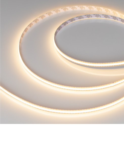 Основное преимущество бескорпусных лент COB — эффект сплошной линии света без применения рассеивателей (экранов). За счет заливки люминофором по всей длине ленты образуется равномерное свечение без видимых точек светодиодов. COB-ленты серии Х480 FreeCut имеют свободную резку, что позволяет создавать подсветку различной формы и длины, ленты предназначены для декоративной подсветки интерьера, а также оформления рекламы и витрин. Тип светодиодов — CSP (X).