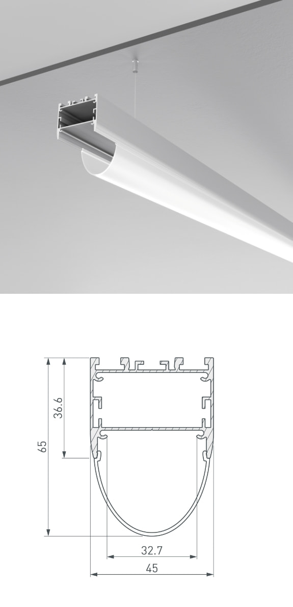 Расширение серии ARH профилями различного назначения: от декоративной подсветки до создания основного освещения, в том числе для создания настенных светильников-бра и линейных светильников с круглым экраном.