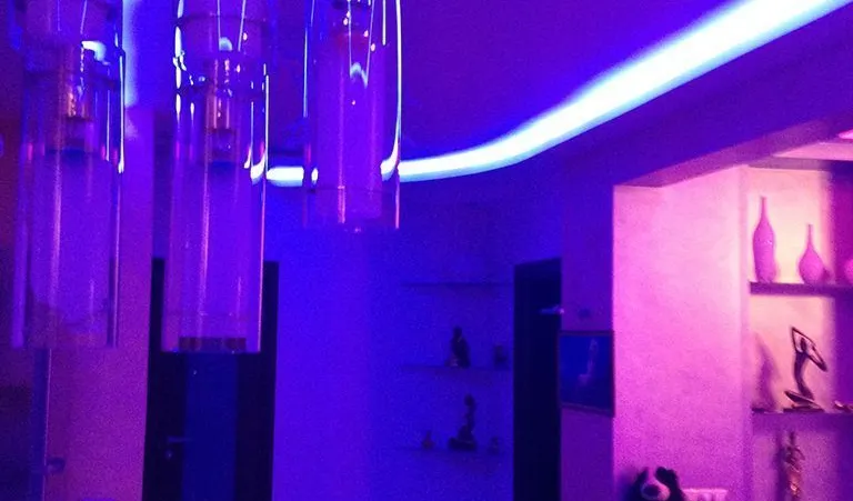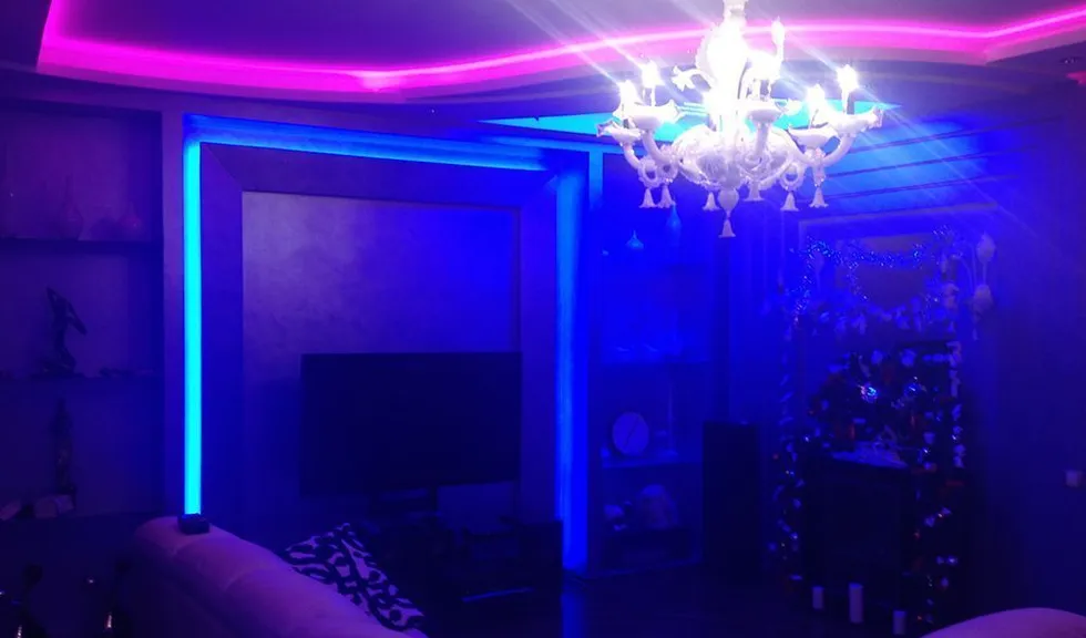 Многоцветная RGB подсветка была установлена во многочисленных нишах во всех частях квартиры: прихожей, гостиной, спальных комнатах и даже ванной.