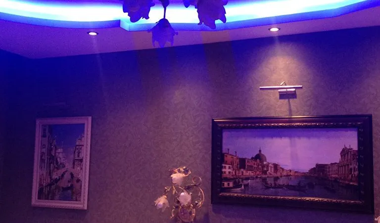 Она была установлена во все ниши: объемные формы у стен и, конечно же, многоуровневые потолки.