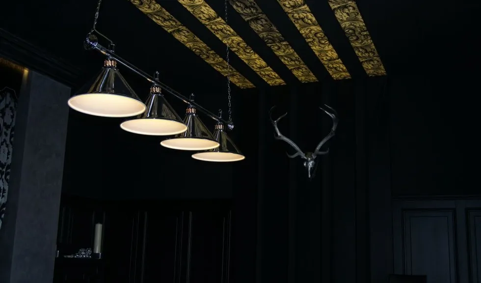 Оригинальность основного освещения достигнута благодаря использованию нестандартных, разнообразных люстр в виде рыбок, кораблей, колючих или, наоборот, мягких и плавных форм, неоспоримо привлекающих к себе внимание и являющихся акцентами в интерьере, в том числе, благодаря использованию в них светодиодной подсветки.
