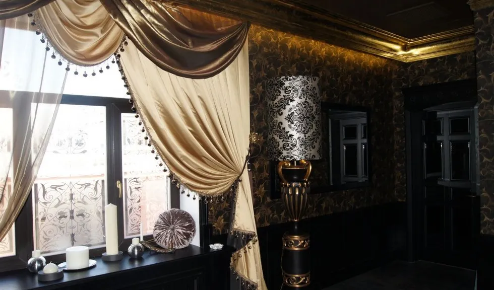 Равномерная подсветка колонн, закарнизная подсветка, подсветка штор гармонично сочетаются с интерьером всего клуба.