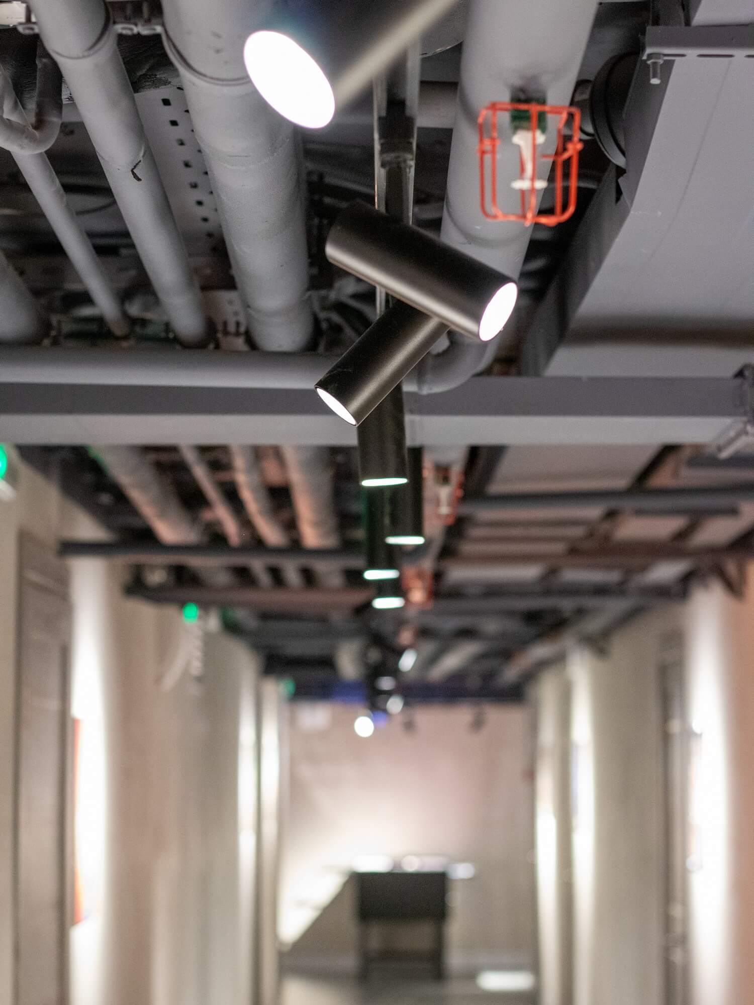 Светодизайн играет одну из главных ролей в этом проекте. Для освещения лофт-пространства Party time использованы трековые светильники, которые можно удобно и плавно перемещать по шине, расставляя световые акценты и освещая именно те локации, которые задействованы в данный момент. Трековые системы в черном исполнении стильно смотрятся в каждой тематической локации лофта и не привлекают к себе внимание, а лишь создают качественное акцентное освещение.