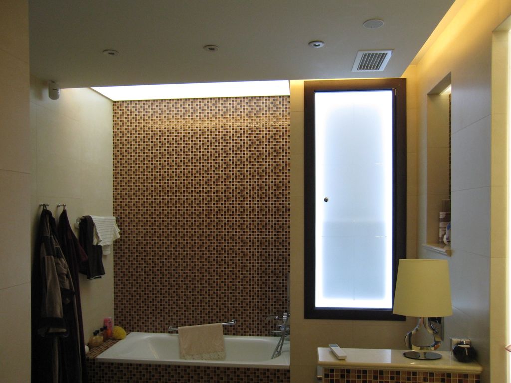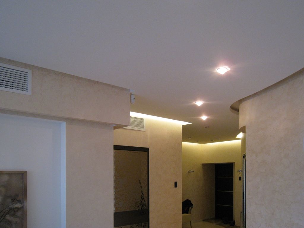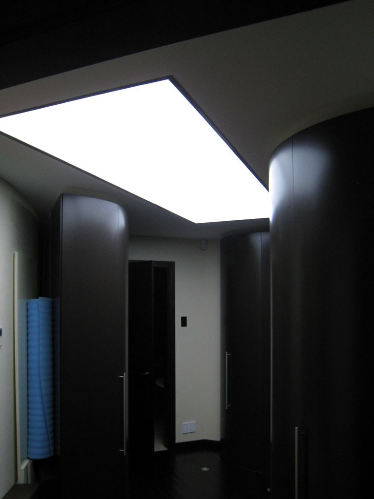 В данном проекте было реализовано необычное решение основного освещения в квартире. В различных помещениях нет привычного центрального источника света. Освещение осуществляется рассеянным светом, который реализуется при помощи закарнизной светодиодной подсветки, светодиодных светильников arlight® и белых витражных светопропускающих потолков со светодиодной лентой arlight®.