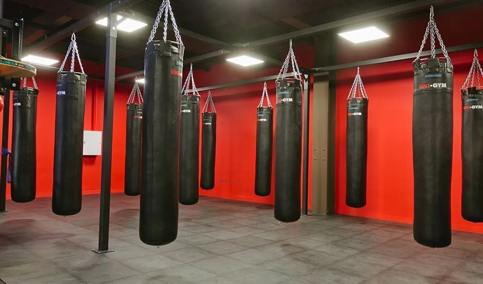 В боксёрском зале ничто не должно отвлекать внимание, поэтому там декоративная подсветка установлена не была, только светодиодные светильники Arlight - квадратные тонкие панели на подвесах - для основного освещения.