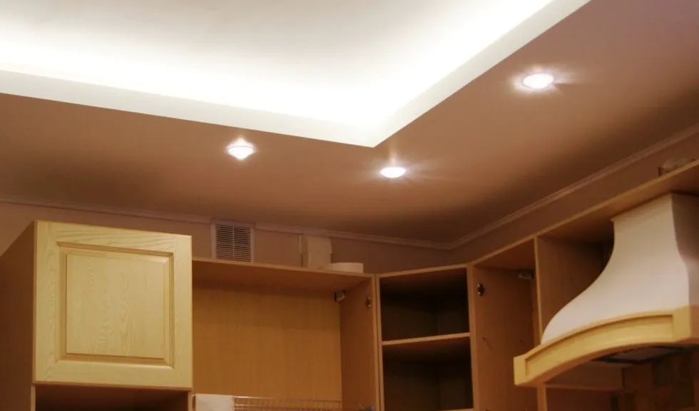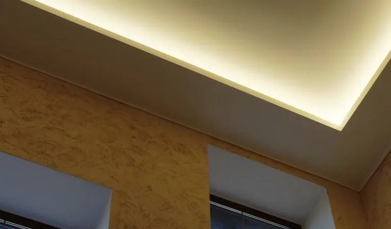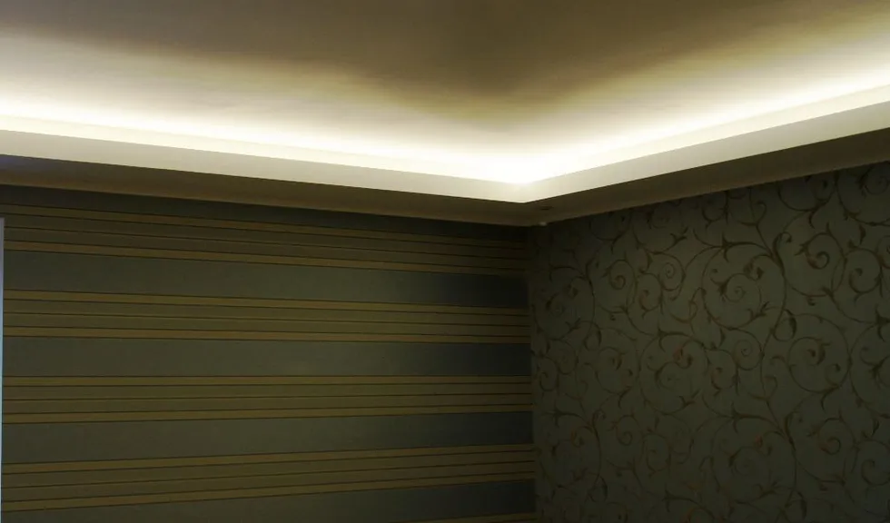 Скрытая светодиодная подсветка, установленная за гипсокартонным потолком, дает мягкий равномерный рассеянный свет. Применение диммеров